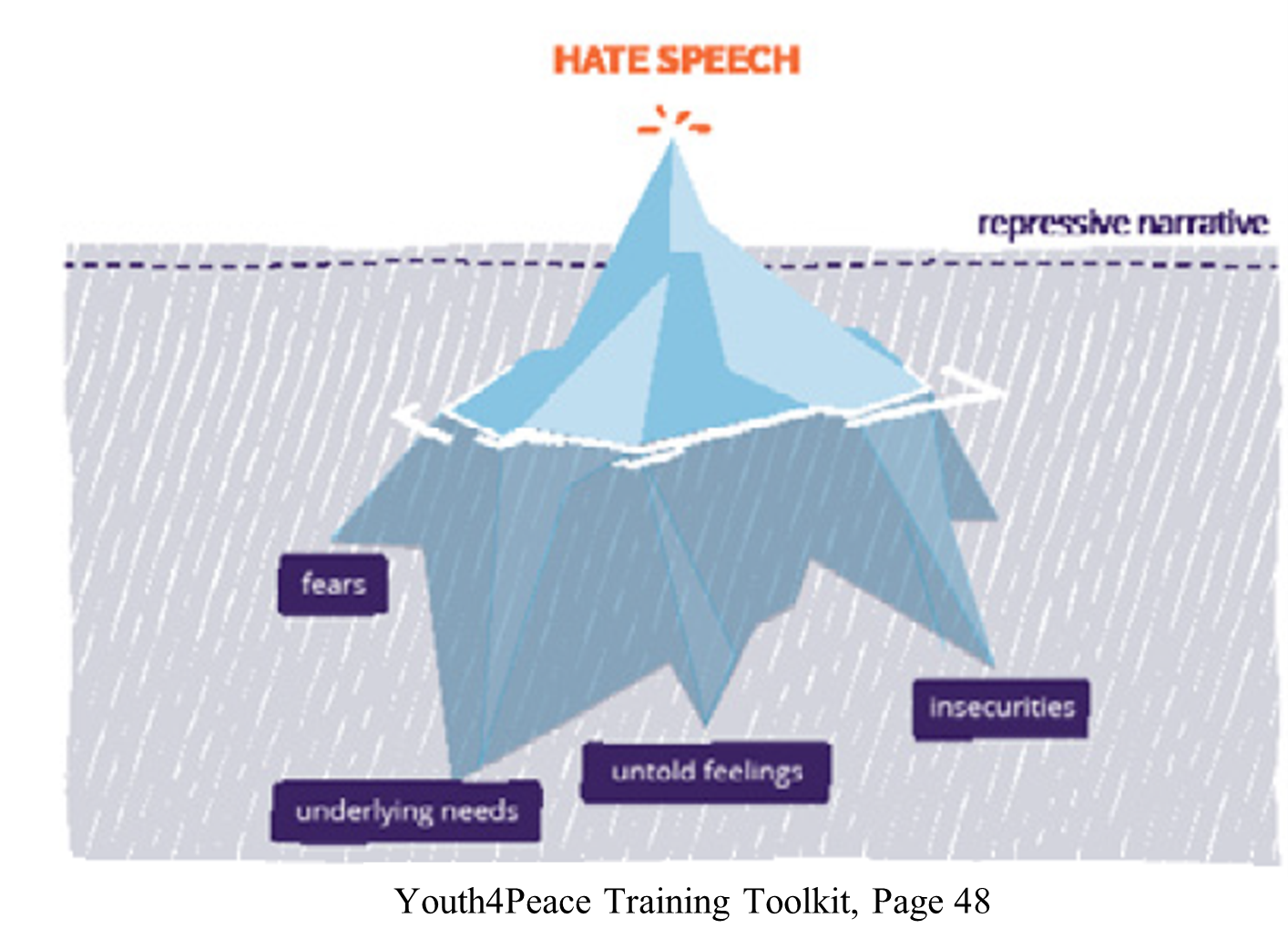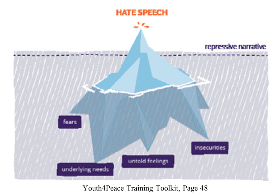 I would like to share this educational resource you can use when teaching youth about narratives and hate speech. It is called the “Case Study Iceberg”.
